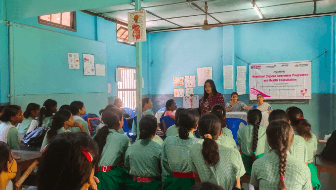 Raising awareness about menstrual hygiene and providing necessary resources, such as pads and menstrual cups, to girls and women in need.